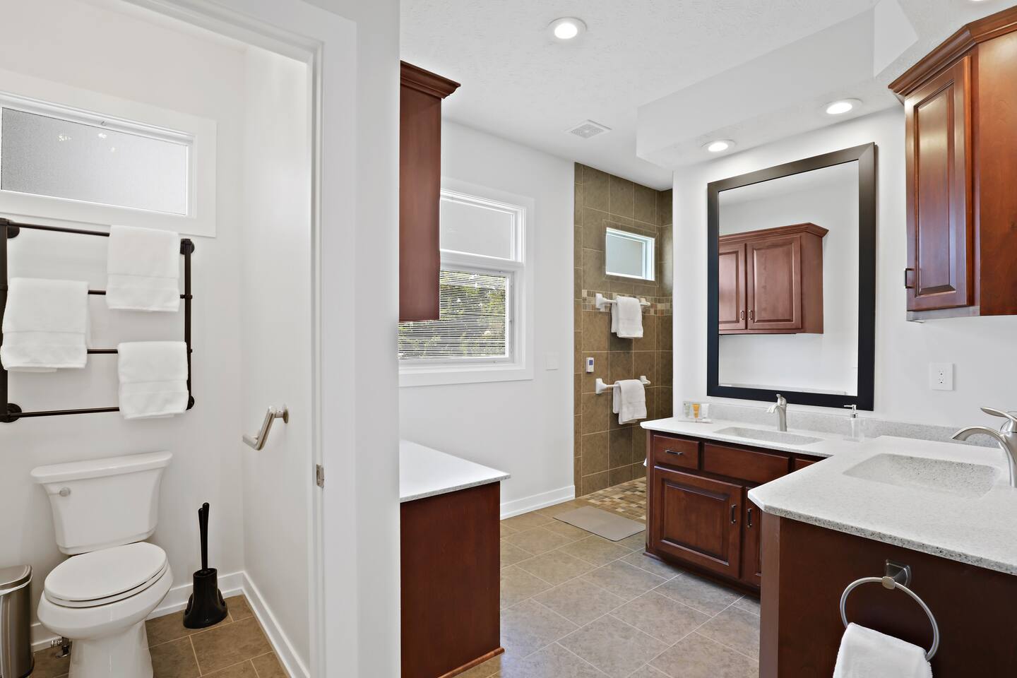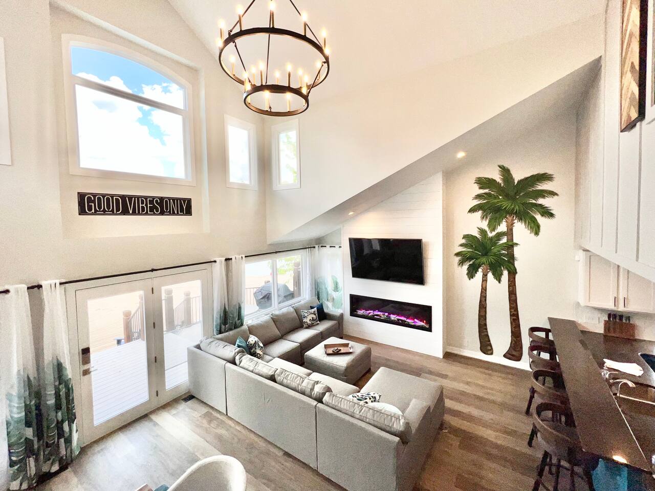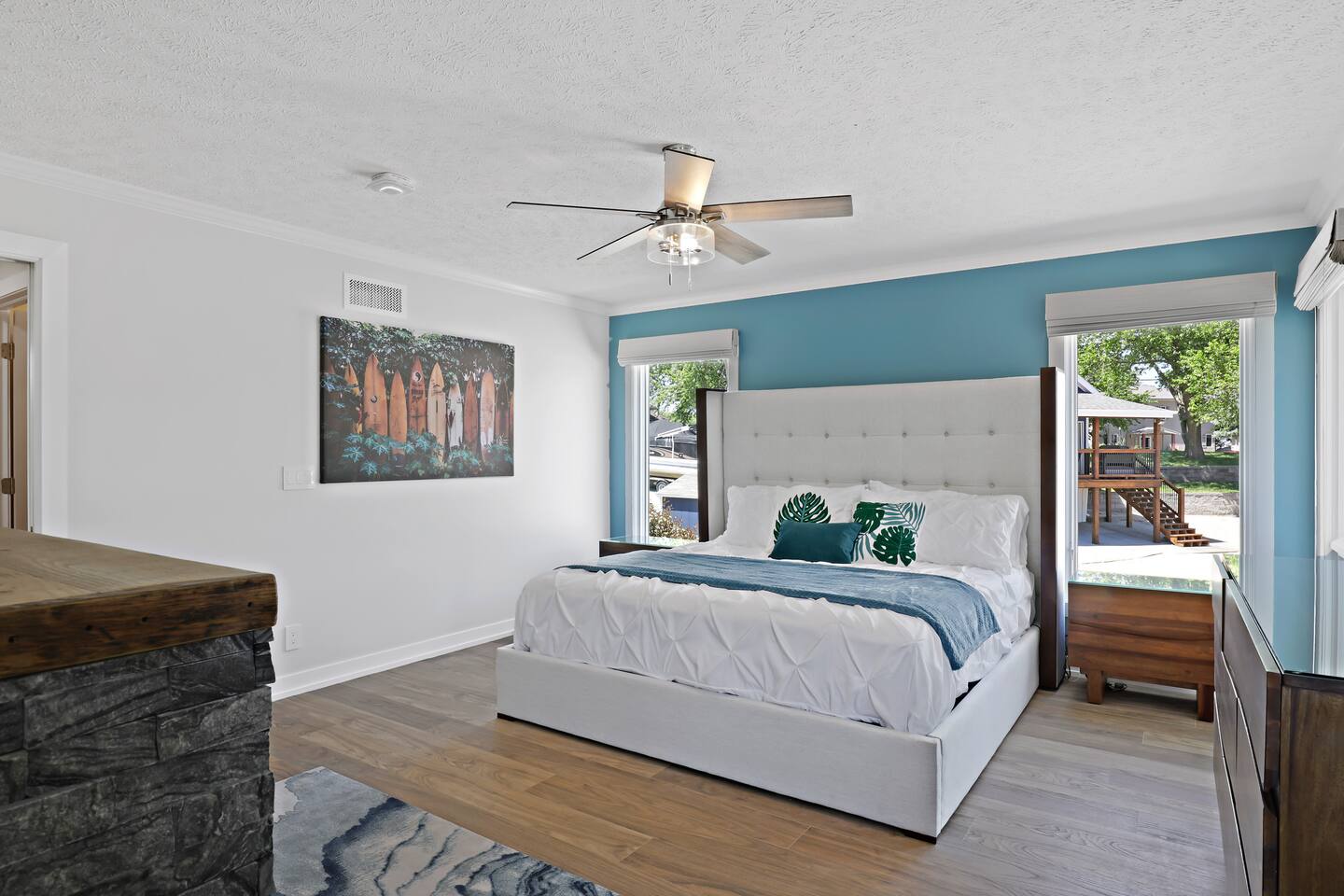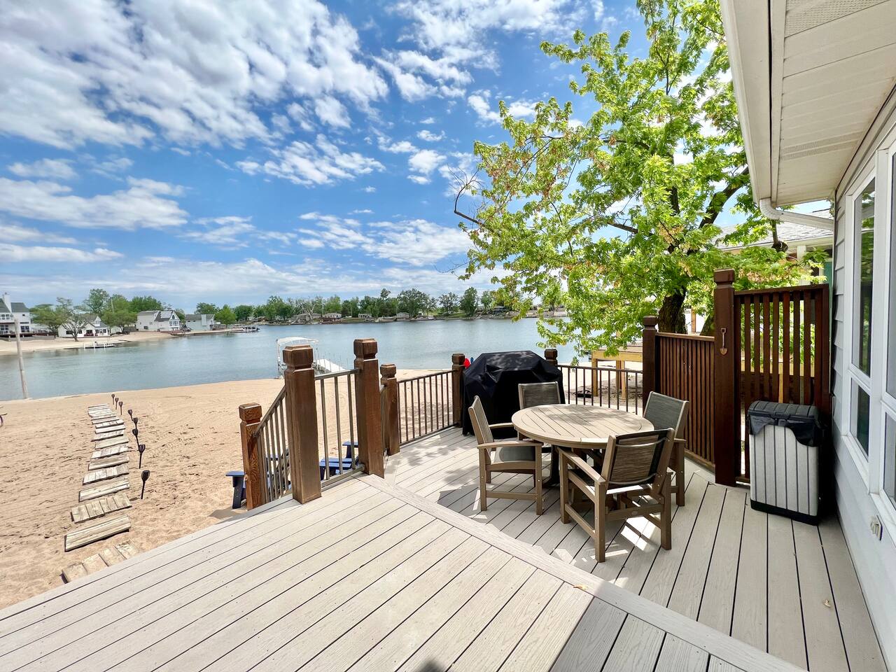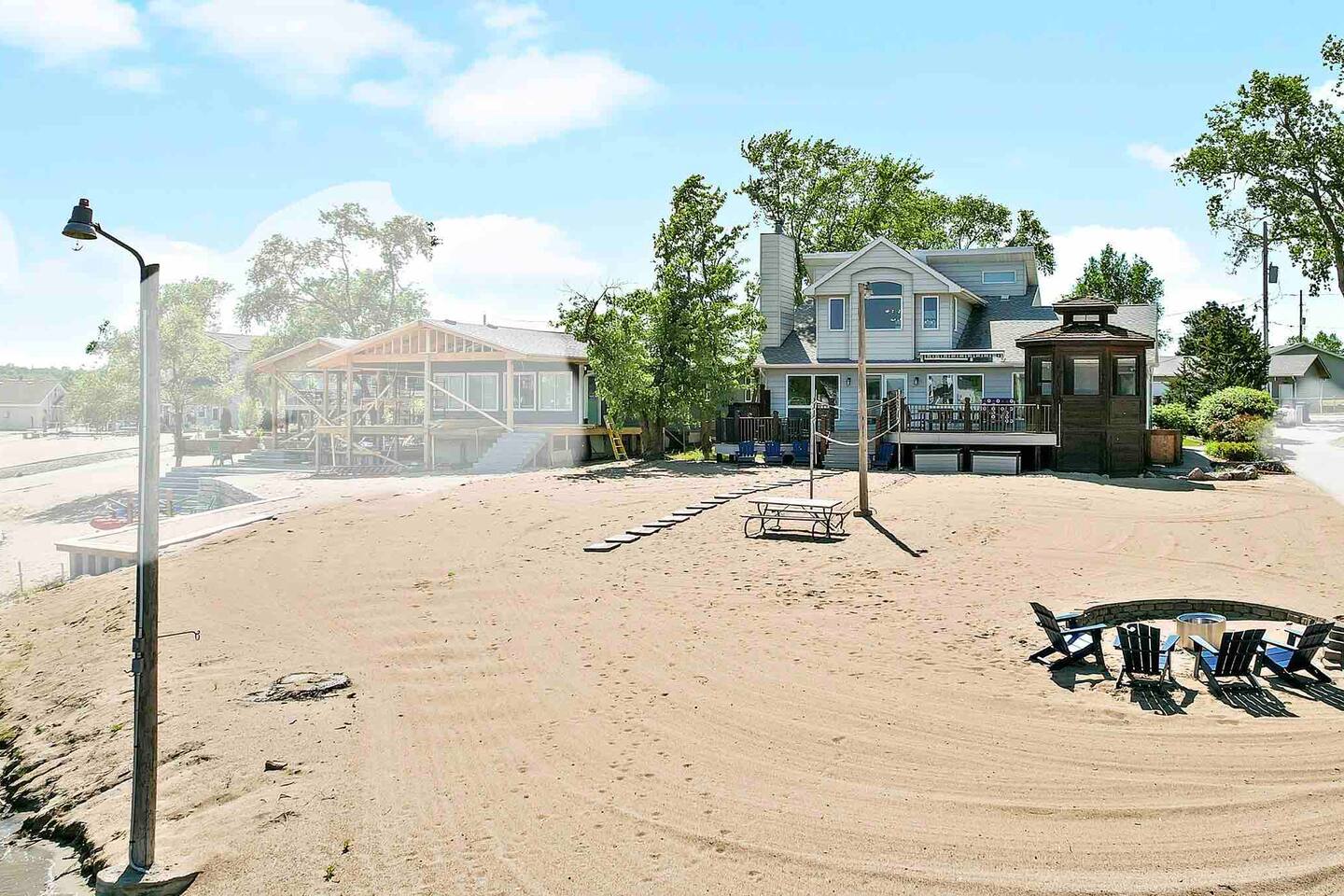 This lakehouse is fully remodeled & has so many unique features including 2 primary suites in main house, plus a 400 sqft guest house ensuite (available Mar to October only)! Other features are over 20ft ceilings in the great room, a large deck, & spacious lakefront beach. Each bedroom has a smart TV, blackout shades, fan, bamboo sheets, Serta or Sealy mattress, & an Alexa. The main floor primary suite is very spacious w/ multiple ADA-compliant features & ramps available for front door.