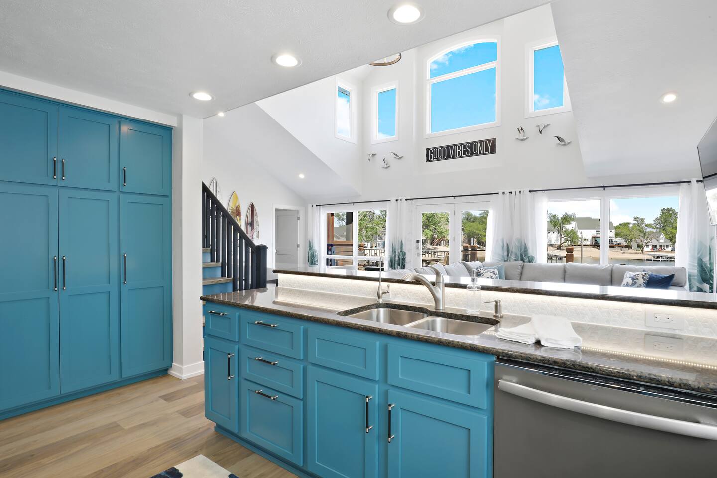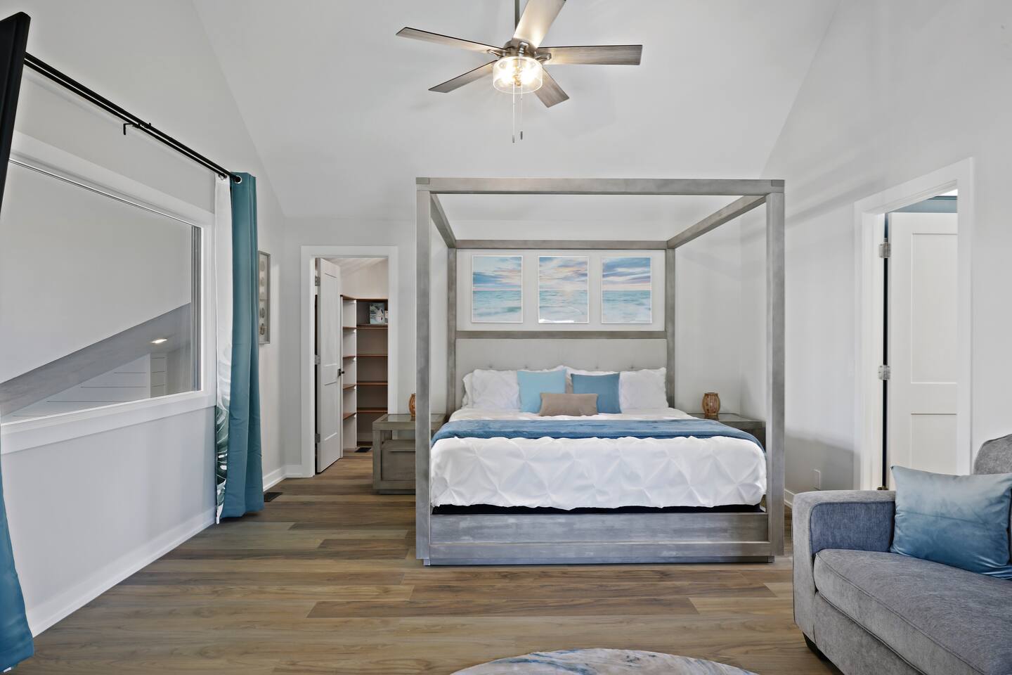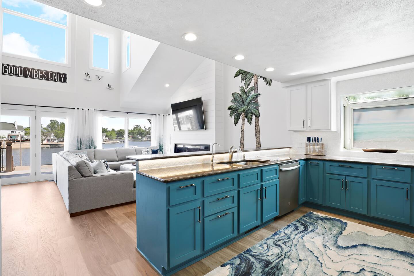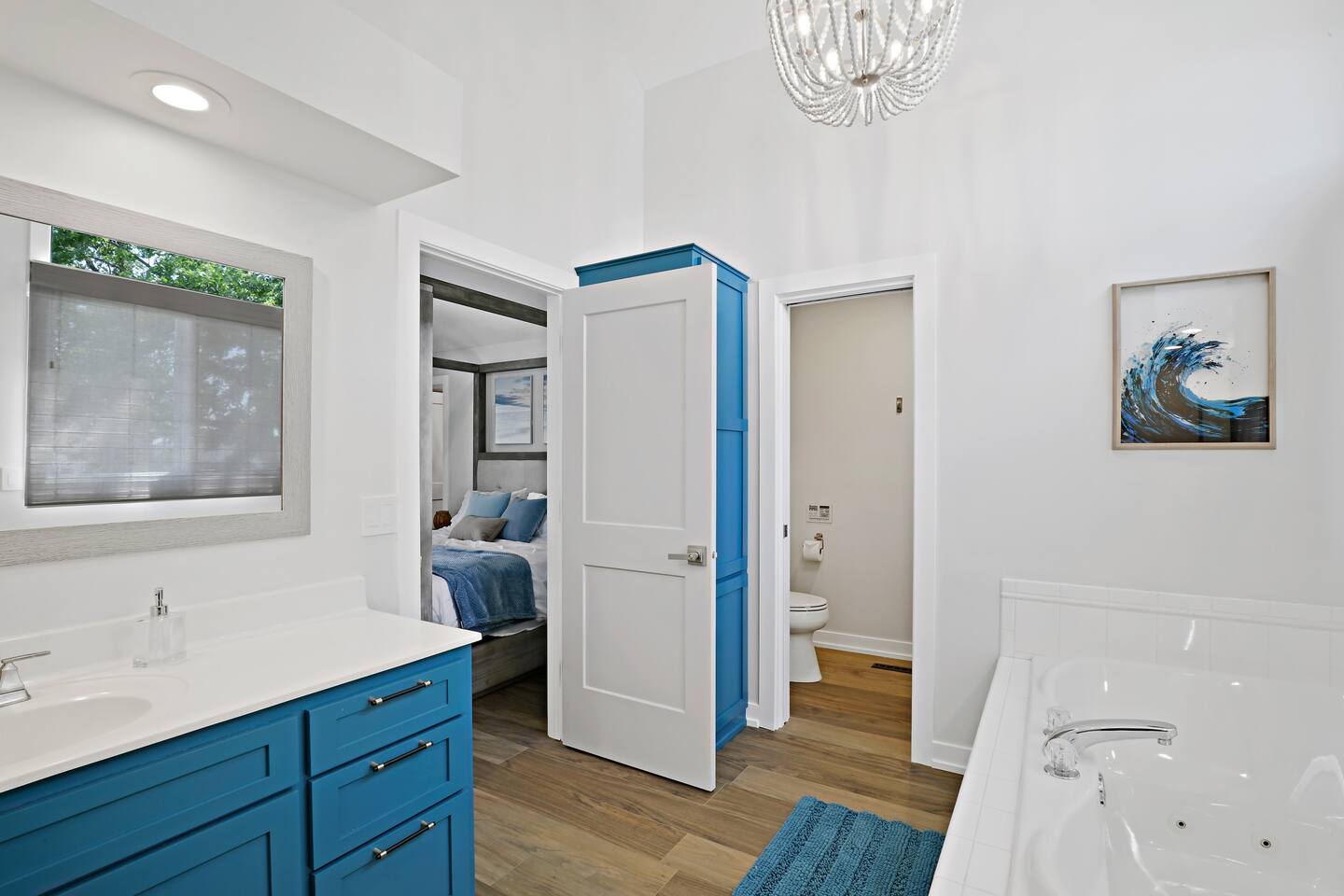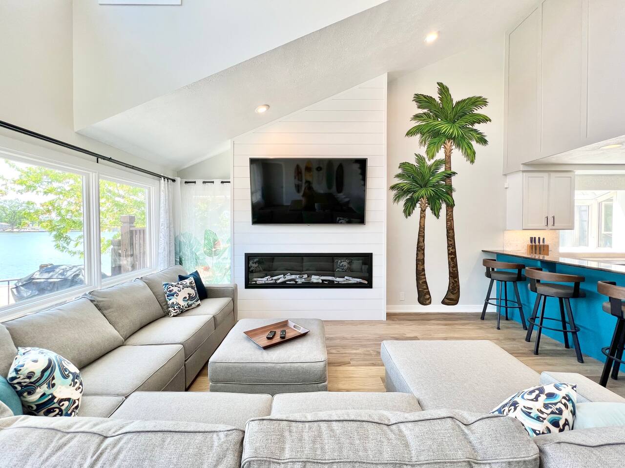 This lakehouse is fully remodeled & has so many unique features including 2 primary suites in main house, plus a 400 sqft guest house ensuite (available Mar to October only)! Other features are over 20ft ceilings in the great room, a large deck, & spacious lakefront beach. Each bedroom has a smart TV, blackout shades, fan, bamboo sheets, Serta or Sealy mattress, & an Alexa. The main floor primary suite is very spacious w/ multiple ADA-compliant features & ramps available for front door.