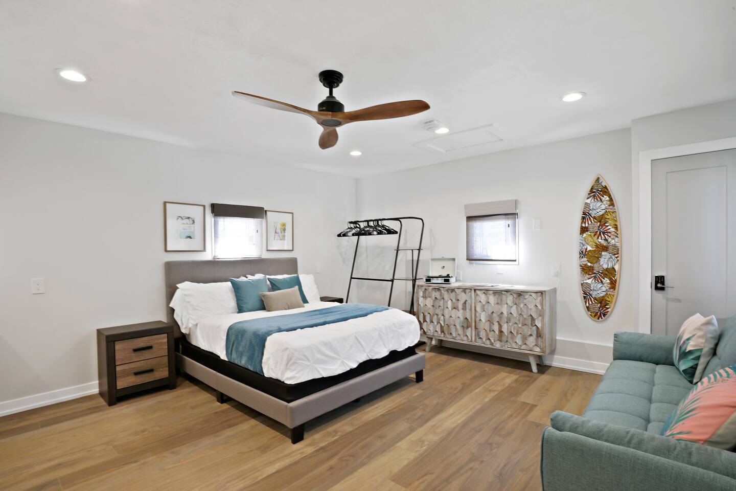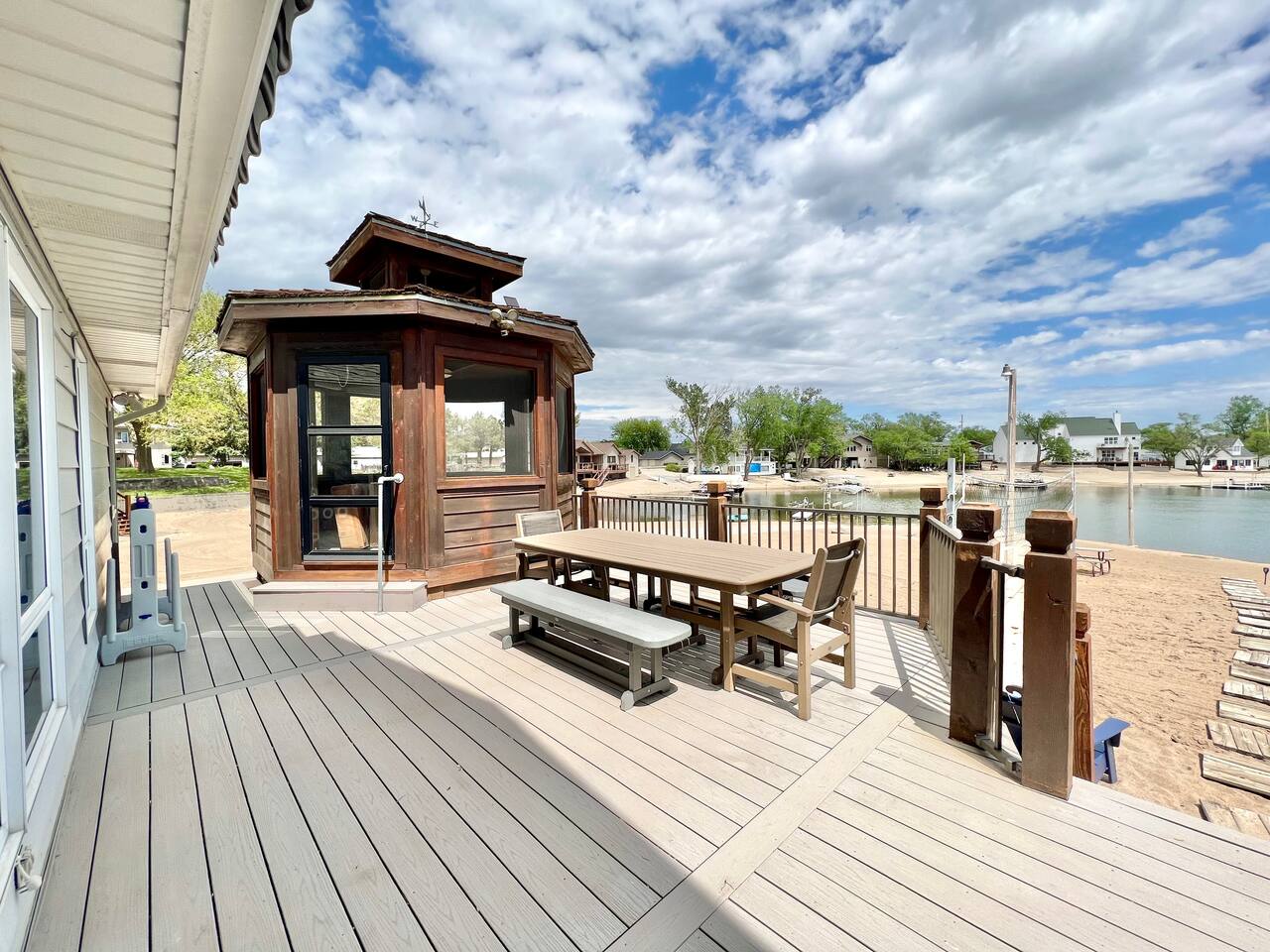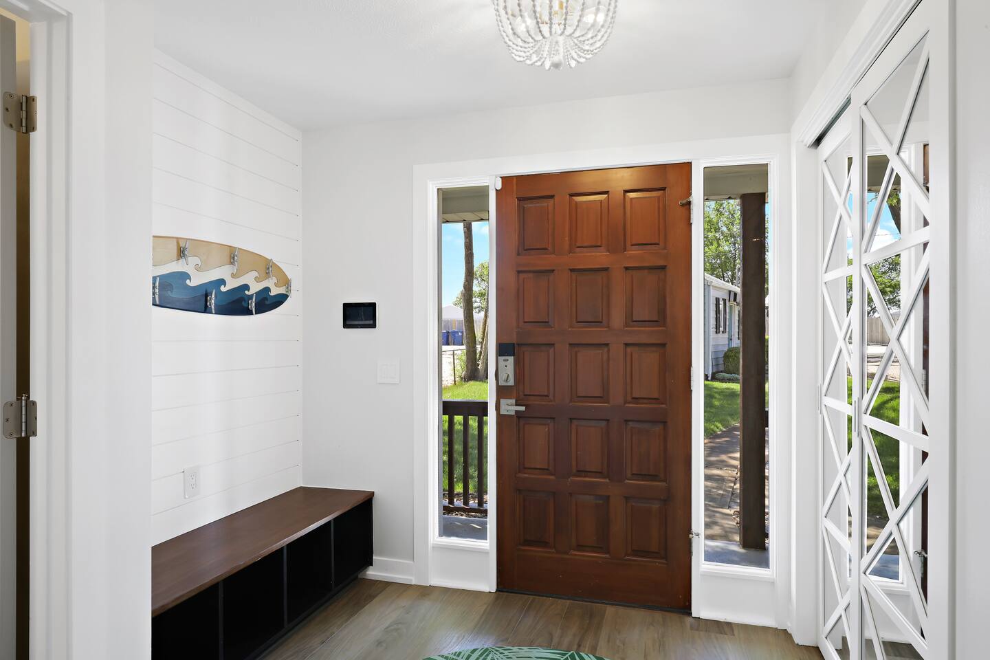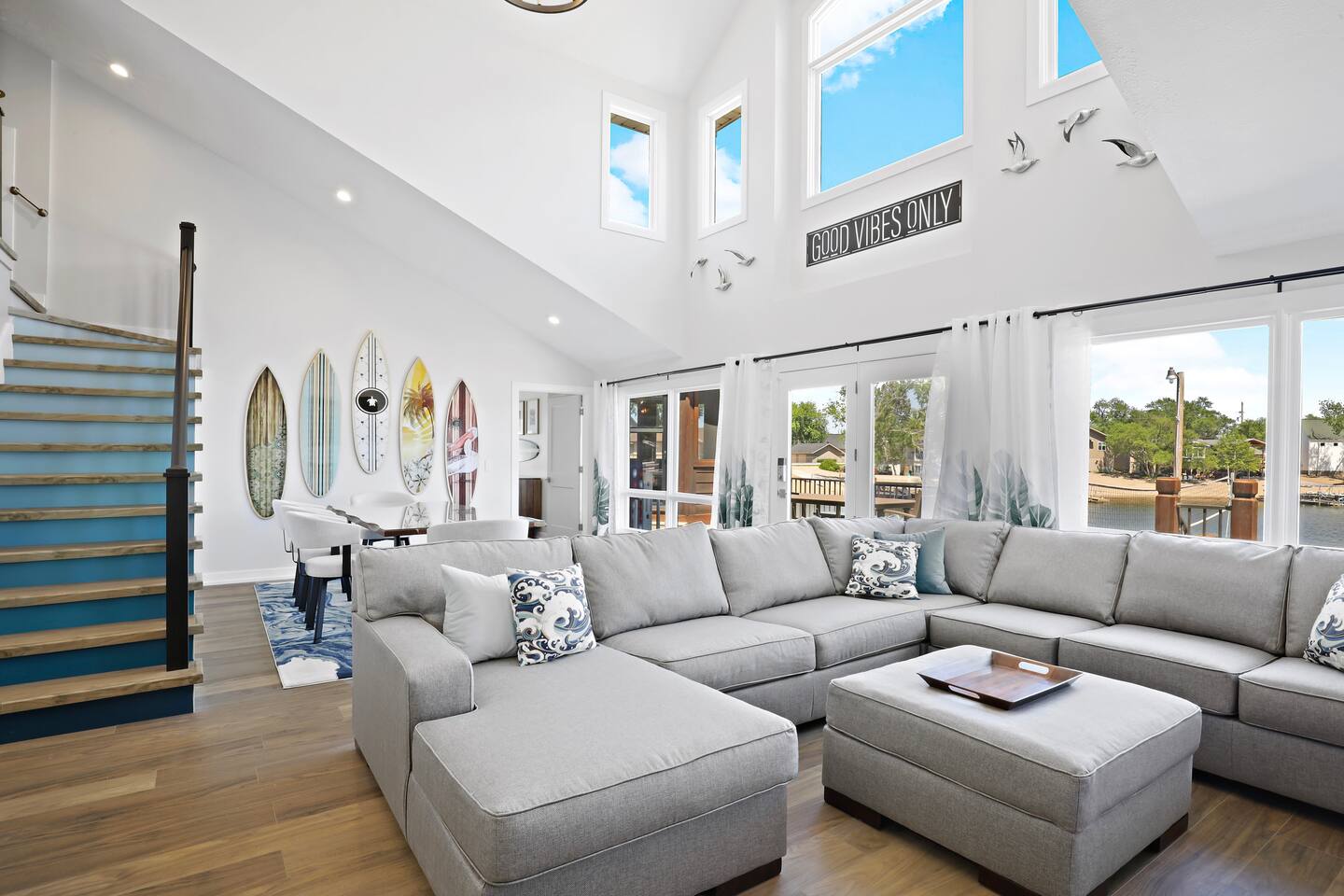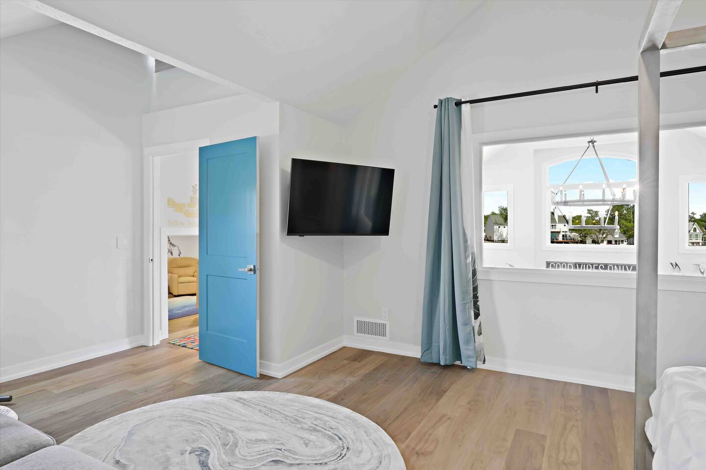 This lakehouse is fully remodeled & has so many unique features including 2 primary suites in main house, plus a 400 sqft guest house ensuite (available Mar to October only)! Other features are over 20ft ceilings in the great room, a large deck, & spacious lakefront beach. Each bedroom has a smart TV, blackout shades, fan, bamboo sheets, Serta or Sealy mattress, & an Alexa. The main floor primary suite is very spacious w/ multiple ADA-compliant features & ramps available for front door.