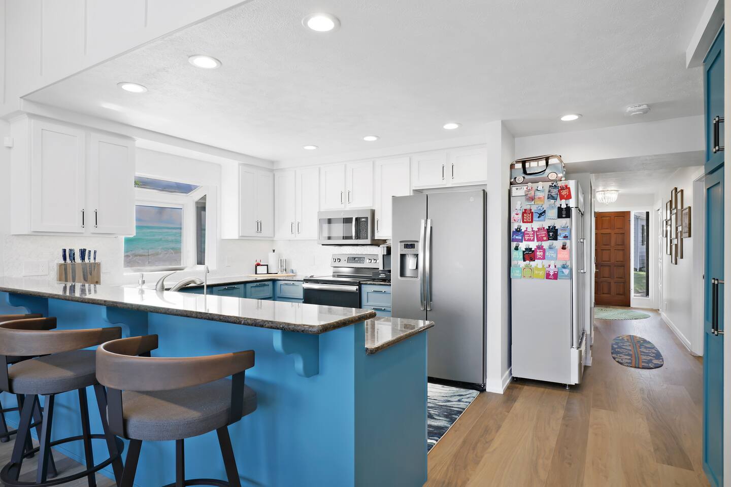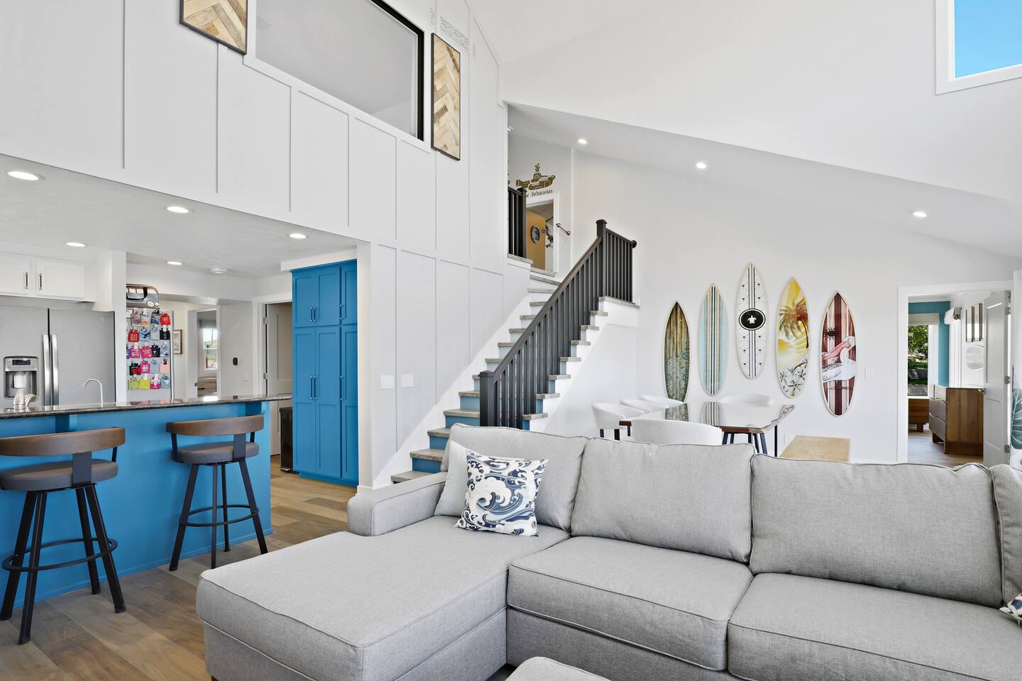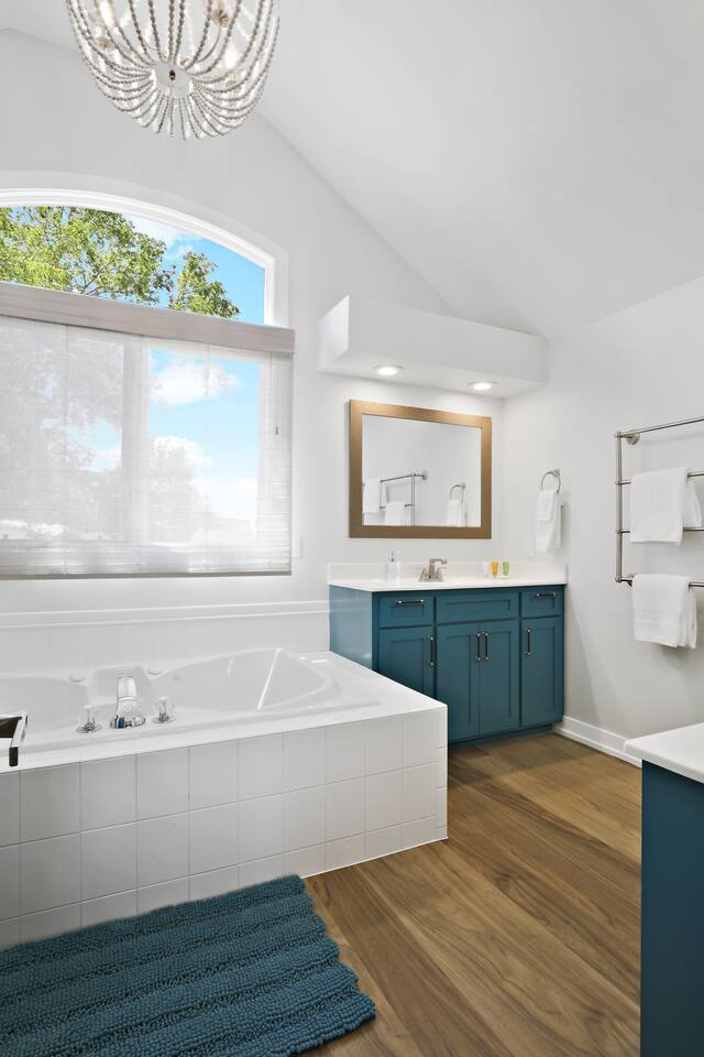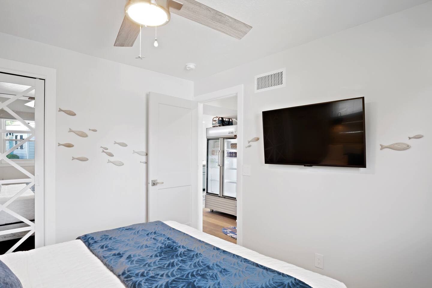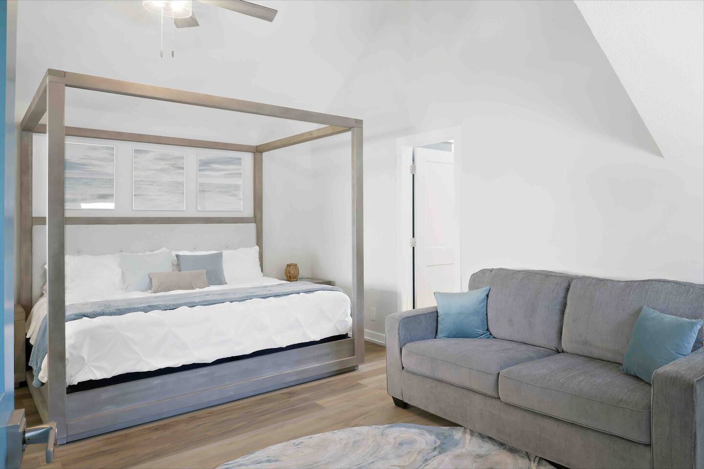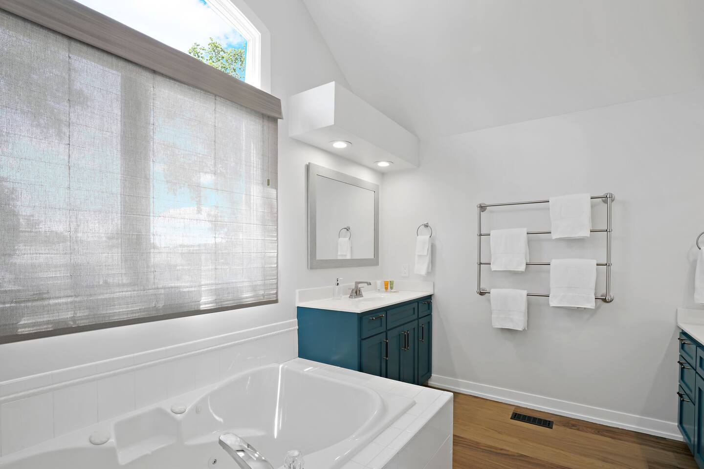 This lakehouse is fully remodeled & has so many unique features including 2 primary suites in main house, plus a 400 sqft guest house ensuite (available Mar to October only)! Other features are over 20ft ceilings in the great room, a large deck, & spacious lakefront beach. Each bedroom has a smart TV, blackout shades, fan, bamboo sheets, Serta or Sealy mattress, & an Alexa. The main floor primary suite is very spacious w/ multiple ADA-compliant features & ramps available for front door.