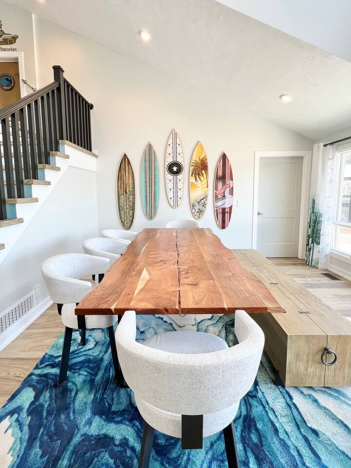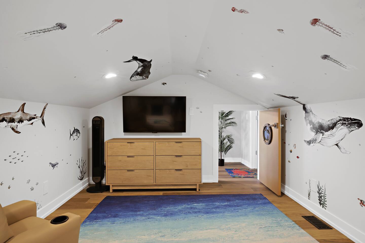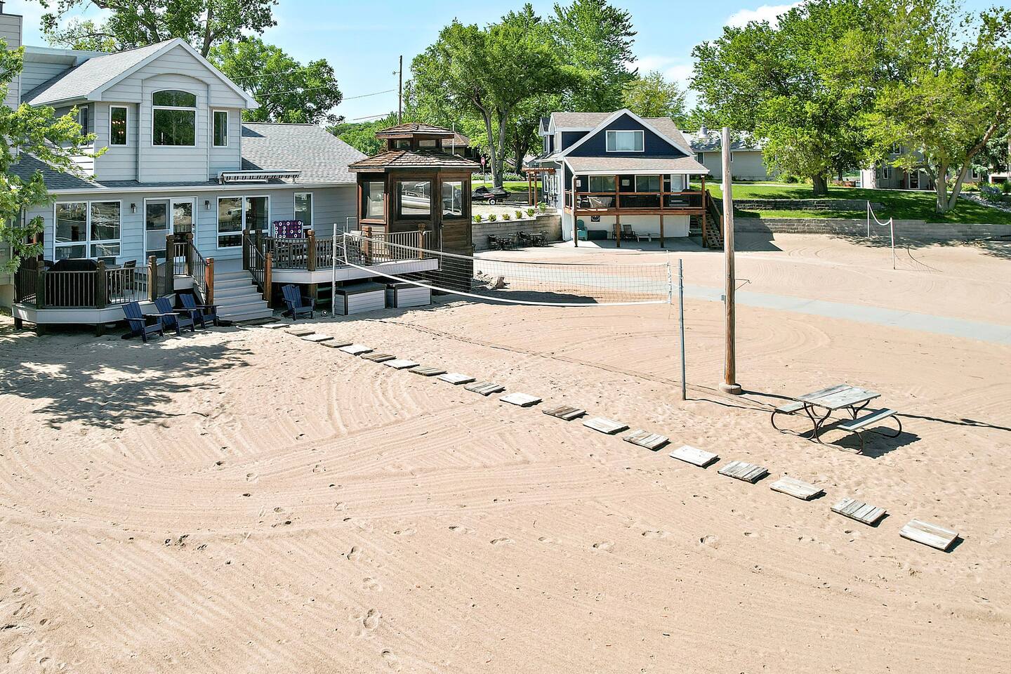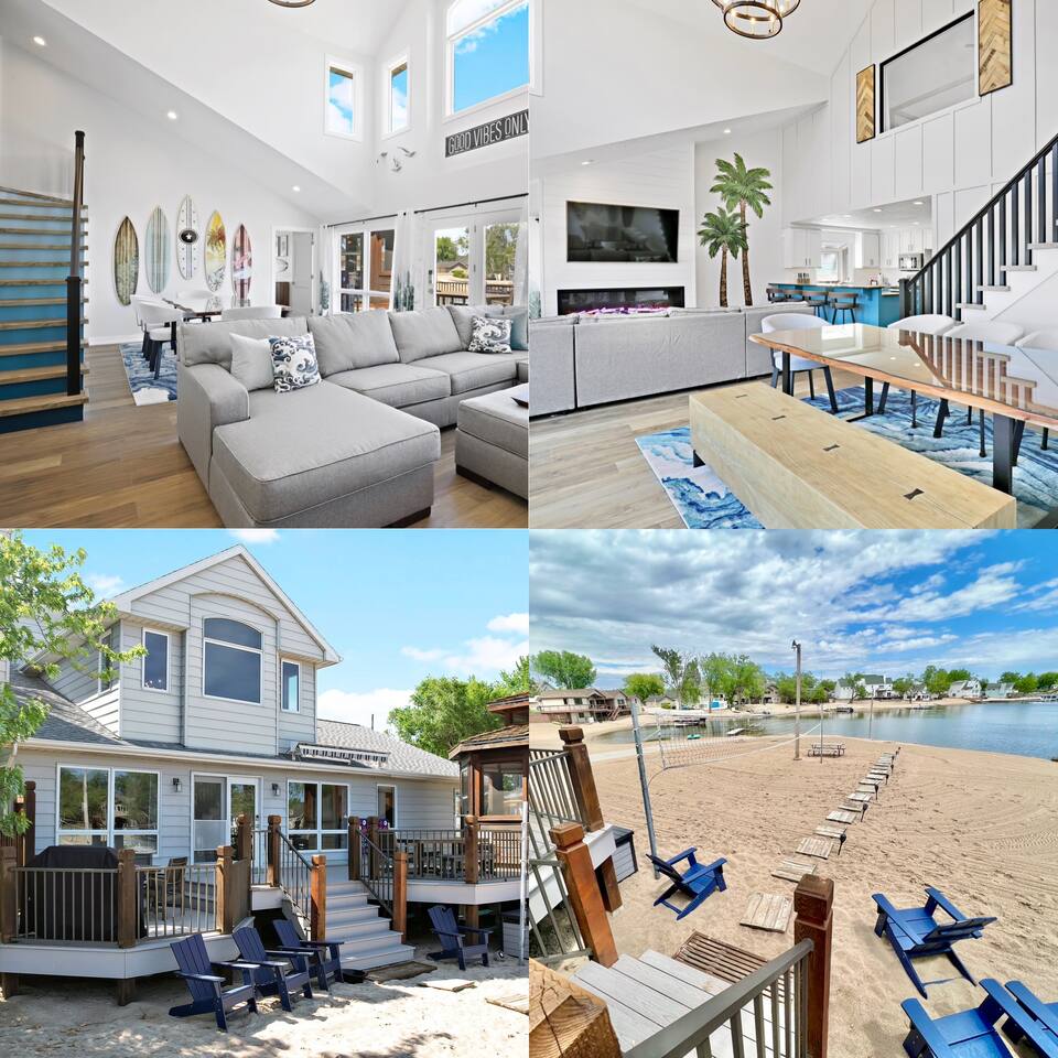 This lakefront home has a total of 6 bedrooms (7 beds, 2 sleeper sofas), 4 bathrooms, 3000 sqft, sleeps 12 in true beds & 4 more people in sleeper sofas & an enormous beach! The main lakehouse is huge with 5 bedrooms & 3 baths. Big bonus, 2 of the bedrooms are true primary suites with attached double vanity bathrooms & walk-in closets. Plus, one of the bedrooms is in its own little 400sqft house on the front of the property that includes a queen bed, pulldown couch, fridge, & its own bathroom (Only available April to October due to weather). 16 guests maximum on property (14 adults & 2 kids). (Note: You can NOT bring any boats or other watercraft as this privilege is for owners only in this private lake community. Kayaks provided weather permitting at least April through October) The great room has soaring 22 ft ceilings with access to a large deck, beach, & lake. It features an electric fireplace, a sectional with a full-size sleeper sofa, & a pair of 12ft tall wooden palm trees which were custom-made for this home. The bedrooms feature an Alexa device (to play ambient noises at night to help you sleep & set alarms) & a smart TV so you can log in to watch your favorite shows. For the ultimate sleep, each bedroom also has a Sealy or Serta mattress, bamboo sheets, a fan, & blackout window shades. The large deck off the great room has multiple seating areas including a gazebo & gas grill (one propane tank provided). The spacious beach has multiple beach chairs you can use to lounge by the water, around the firepit, or if you want to watch others play volleyball. We also provide kayaks, a variety of life jackets, kids' beach toys, and more. This home also has many ADA-compliant features including two portable ramps if needed to enter the home (let me know before your arrival if needed). The main floor primary suite has many additional helpful features including wide doorways & an adjustable king bed controlled by a remote. The en suite bathroom has double vanities/ sinks one of which is lowered, an easy access shower, and grab bars throughout. This walk-in closet also has a storm shelter hatch in the floor with a short 5 step ladder to enter. This home is off the interstate & only 20 minutes to downtown Omaha which includes the Old Market, CHI Center, and College World Series events. Other attractions nearby are the Henry Doorly Zoo (18mins), Werner Park (20 mins), & Eppley Airfield (25mins). Main Level: - Great Room: soaring 20+ ft ceilings with an electric fireplace, 75” smart tv, & access to a large deck/ lake. Has a full-size sleeper sofa in the sectional if needed. This area has sitting for approximately 12 people to eat (additional eating space outside). - Kitchen: features mother of pearl shell backsplash, granite, under-cabinet lighting, & a large clear display beverage fridge in addition to a double-door refrigerator. Also, has an oven with an electric cooktop, microwave, Keurig, Ninja blender, toaster, &more. - Main Level Primary Suite: 1 King bed, electric fireplace, smart tv, walk-in closet, 2 vanities/ sinks, open double-headed shower. The room has many ADA-compliant features but not all encompassing. Walk-in closet also has a storm shelter hatch in the floor with a short 5 step ladder that can be used during tornado warnings or severe storms. - "Happy Camper" Bedroom (Non-conforming, NO window): 1 queen bed, smart tv, area behind barn door is storage for a highchair and pack n’ play and its mattress. It can be set up in there open to bedroom. - "Catch n' Relax" Bedroom: 1 queen bed, smart tv - Main Bathroom: 1 vanity/ sink, shower, and toilet Second Level: - "Captain's Cabana" Primary Suite: 1 king bed, 1 queen sleeper sofa, swing chair, smart TV, walk-in closet. The ensuite includes two vanities/ sinks, a bathtub, a shower, &a toilet. Features a unique view over the great room & a view of the lake through its window. - "Yellow Submarine" bedroom (Non-conforming, No closet & SHORT ceiling): max-height at peak of ceiling is only 5’6”, best suited for children or adults under that height. 2 twin beds, smart tv, a dresser, & a mini recliner (No closet). Has glow-in-the-dark fish throughout. Guest House "The Original Surf Shack": almost 400 sqft & only available April through October (NOT available November through March due to weather). This was the original house built on the lake in 1950 and has undergone a complete renovation. - 1 Queen bed, 1 couch, smart TV, eating area, retro refrigerator - Small Bathroom: 1 vanity, shower, toilet, and access to the outdoor shower. Outside: - A large deck with multiple seating areas, gas grill, screened-in gazebo, fire pit on the beach, volleyball net, kayaks, variety of life jackets, kids beach toys, and more. - You and your guests can NOT have boats or jet skis. If there is something else you want to bring ask me and I will let you know the community rules on if and how it is allowed so you can make an informed decision if you want to bring it. Parking: no more than 8 cars allowed. There is parking on the gravel driveway & additional designated parking across the street on cement in front of garages (guests do NOT have access to inside garages). No parking along the side of the street, narrow roads in the neighborhood. Pets: Maximum of 2 dogs. Must be preapproved by the host. No cats are allowed as hosts & their kids are extremely allergic. Dogs must be kenneled when left unattended, leashed at all times when outside, and must pick up pet's waste. Rules are included in agreement. Security System throughout both homes with multiple security cameras outside only, for insurance and safety purposes, NOT for guest use. The owners live in the community if needed.