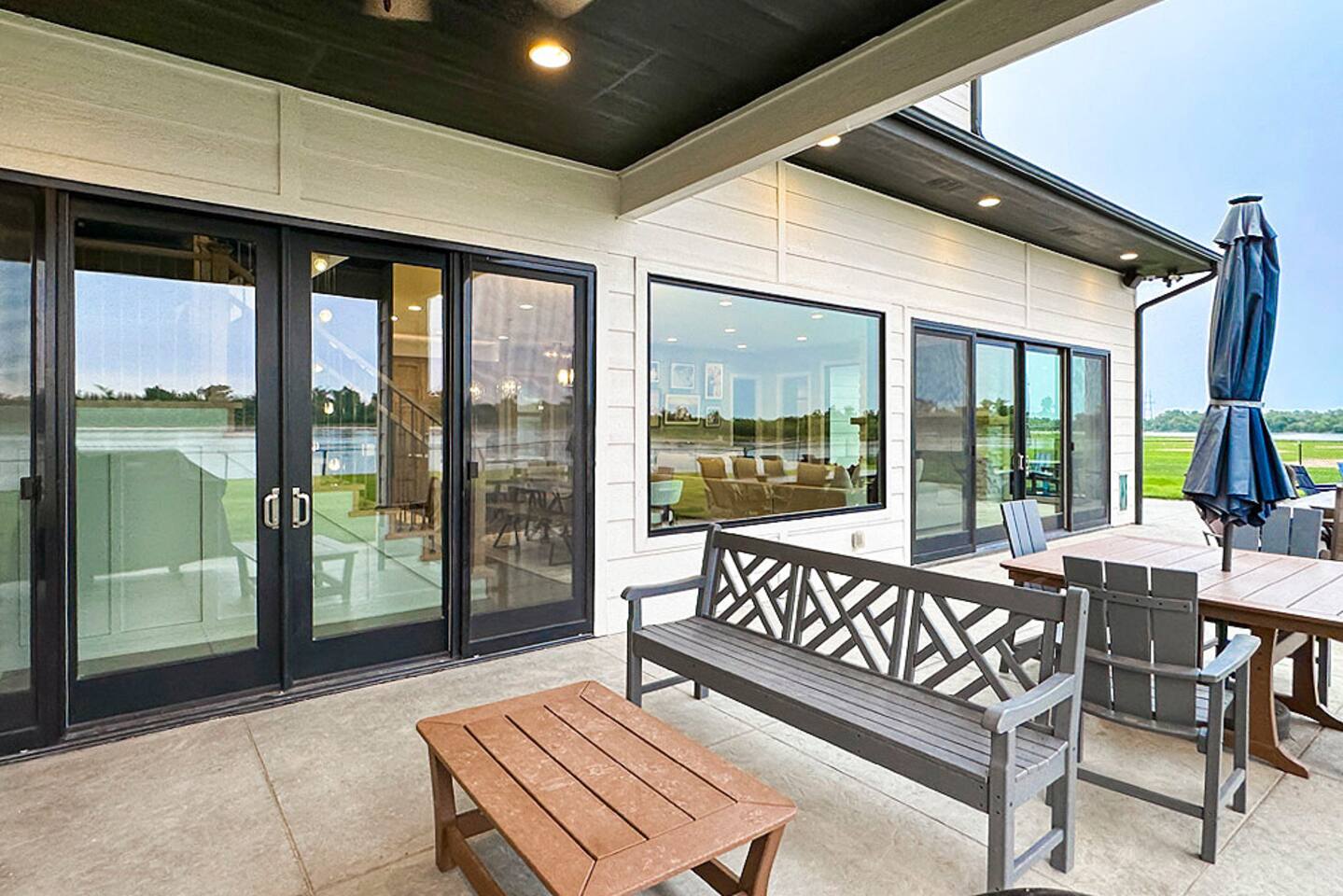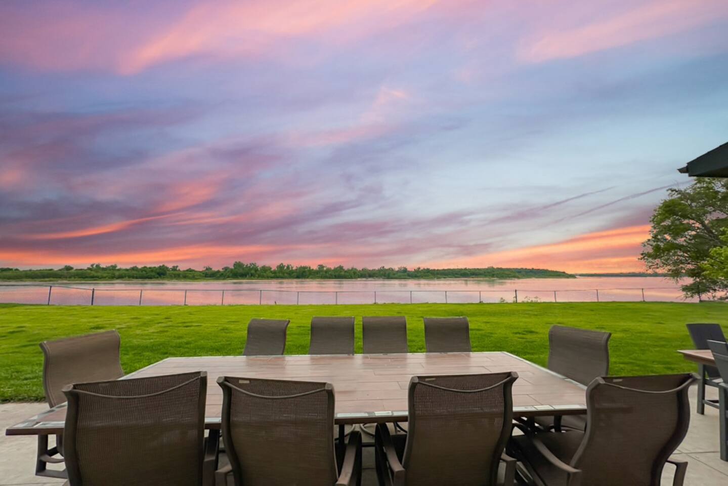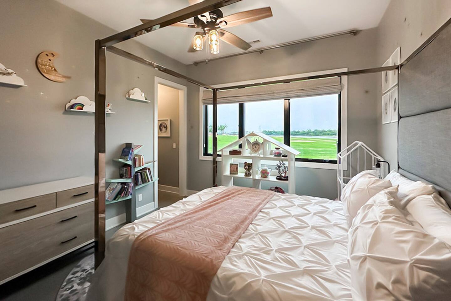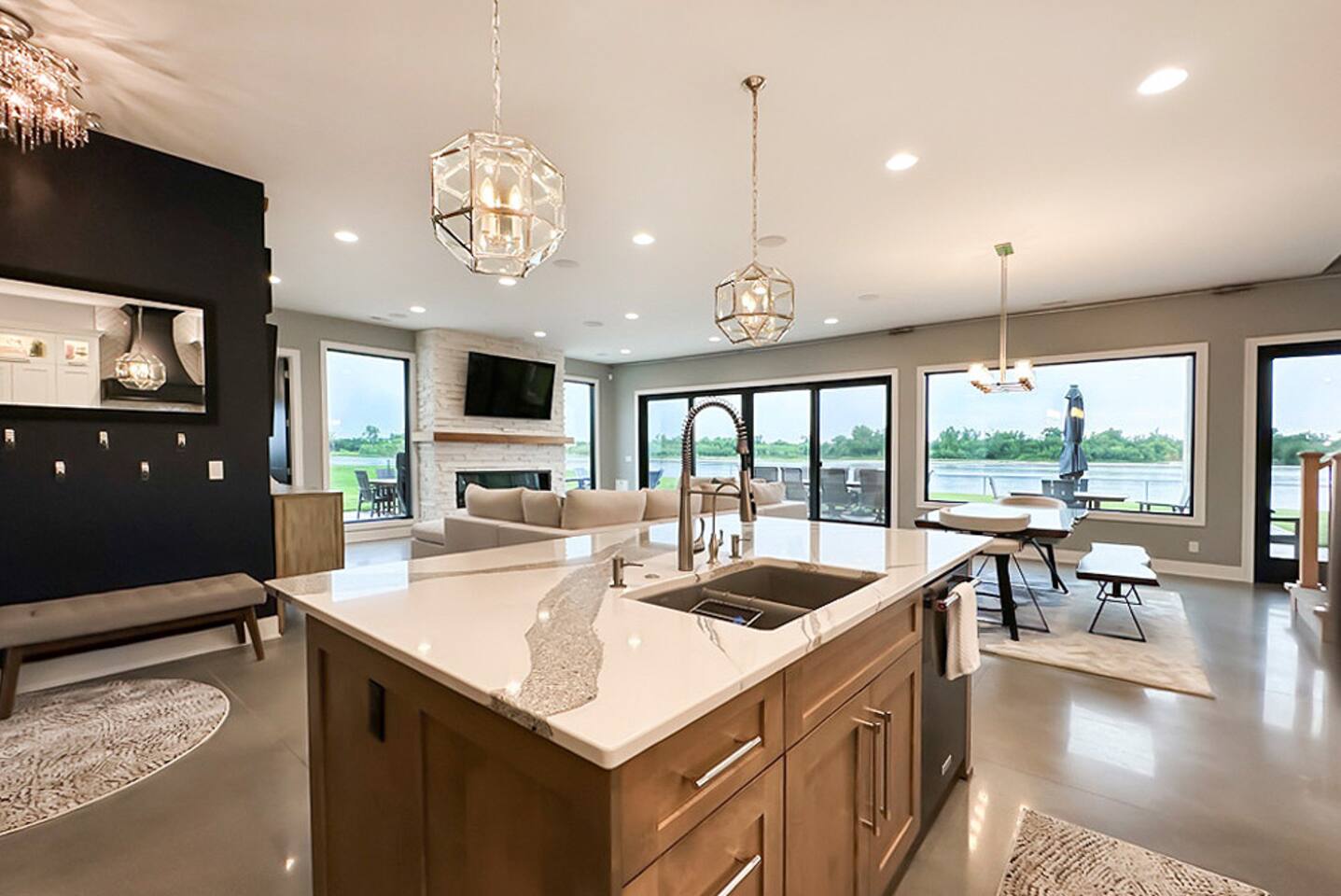 This is our personal Riverfront home with a total of 5 bedrooms, 4 bathrooms, 3000+ sqft, sleeps 10 in true beds & incredible views! Big bonus, the primary suite is on the main floor along with 2 more bedrooms. Family room, 2 more bedrooms, & bathroom upstairs. 10 guests maximum on property. Important to Note: You do NOT have access to the river for safety purposes. Also, since this our personal home the drawers & closets will have our clothes but plenty of hanging space for your clothes. Help yourself to any food in the pantry or refrigerator. I provide lots of disposable plates, cups, utensils & napkins. Open floor plan with kitchen, dining, & living room is one shared space. The living room features an electric fireplace (currently not working) and a large sectional. The large patio off the living room has multiple seating areas, a gas grill (one propane tank provided), fire pit (firewood provided) & a TV. The bedrooms feature an Alexa device (to play ambient noises at night to help you sleep & set alarms) For the ultimate sleep, each bedroom also has bamboo sheets, a fan, & blackout window shades. The main floor primary suite has many helpful features including wide doorways & an adjustable king bed controlled by a remote. The ensuite bathroom has double vanities and a shower so large it also has a tub inside of it. Owner will leave you plenty of space in the walk-in closet to hang your clothes. This home is off the interstate & only 20 minutes to downtown Omaha which includes the Old Market, CHI Center, and College World Series events. Other attractions nearby are the Henry Doorly Zoo (18mins), Werner Park (20 mins), & Eppley Airfield (25mins). - Kitchen: features walk-in pantry, oven with an electric cooktop, microwave, Keurig, blender, toaster, & more. -2nd Bedroom (girl’s room): 1 queen bed & 1 vanity with access to shared bathroom. - 3rd Bedroom (boy’s room): 1 queen bed & 1 vanity with access to shared bathroom. - 2nd Bathroom: access between bedroom 2 & 3. Share a tub/ shower combo & toilet. - 3rd Bathroom: 1 vanity/ sink, shower, and toilet. Second Level: - Family room with sectional, smart TV & gorgeous views of the river. -3rd Bedroom: 1 king bed, smart TV, closet. -4th Bedroom (Non-conforming, No built in closet open one provided). Queen bed, smart tv, & a desk. - 4th Bathroom: 1 vanity, shower, & toilet. Parking: no more than 6 cars allowed. Guests do NOT have access to inside garages. No parking along the side of the street, narrow roads in the neighborhood. Security System throughout home with multiple security cameras outside only, for insurance and safety purposes, NOT for guest use.