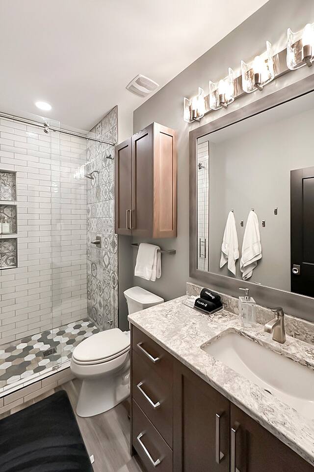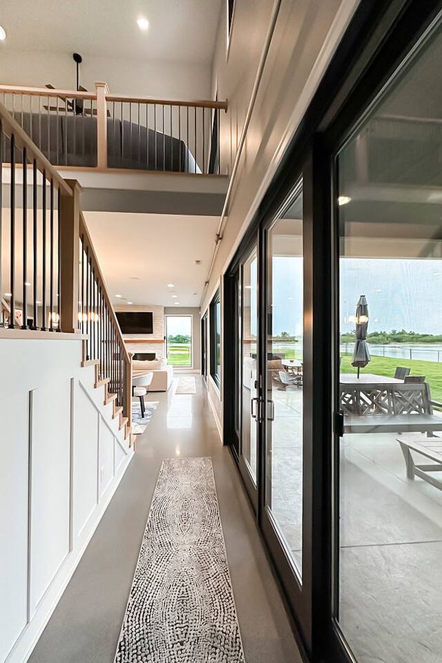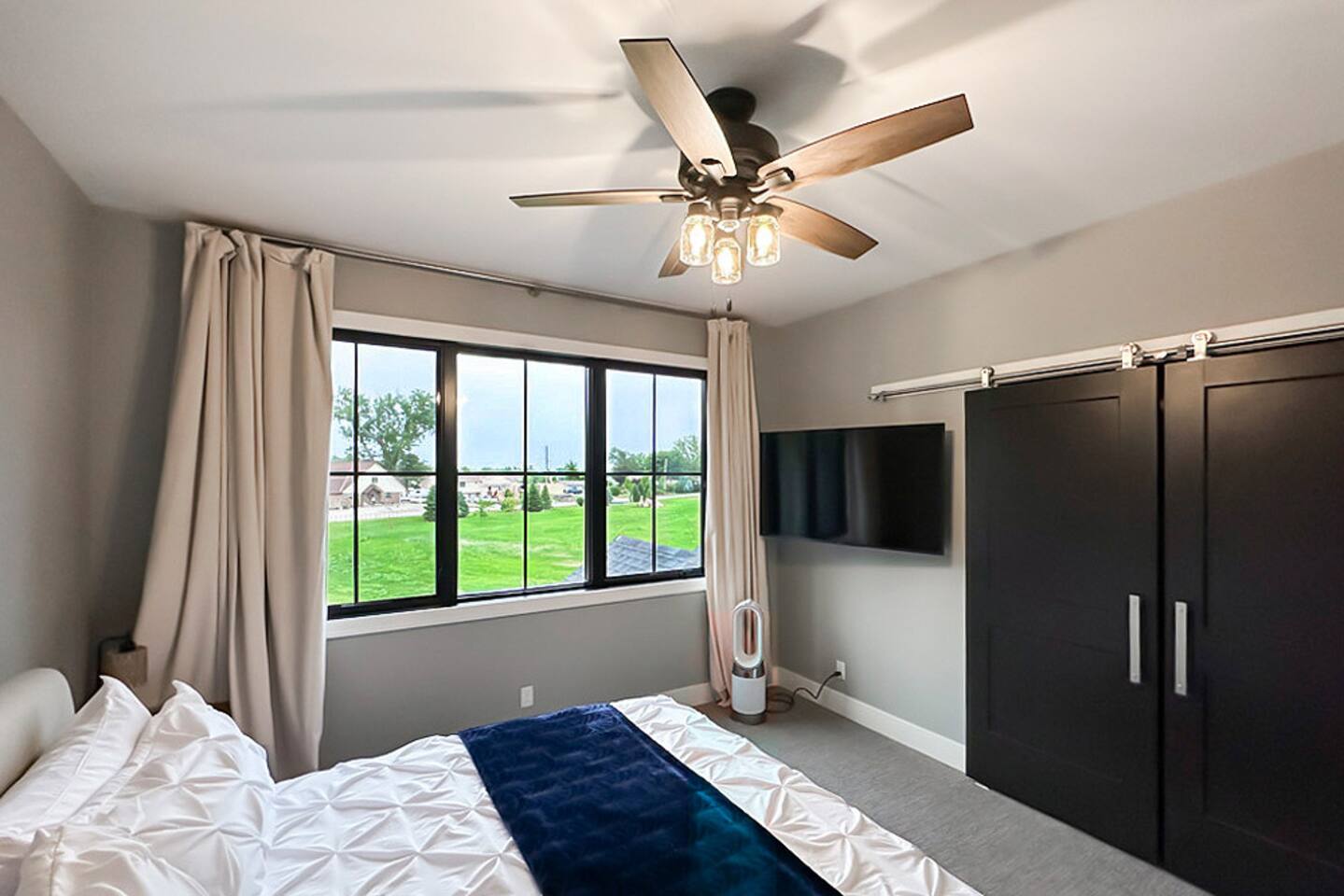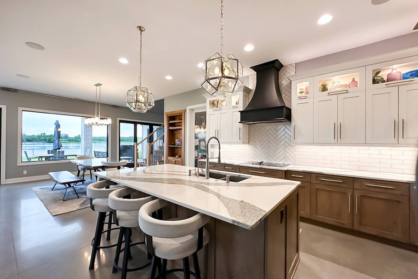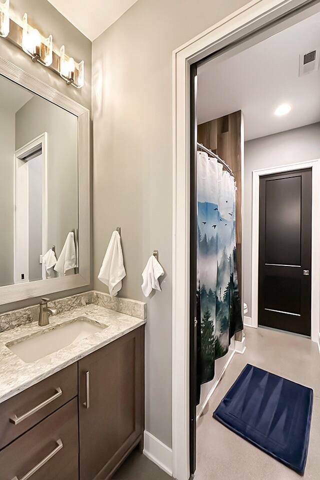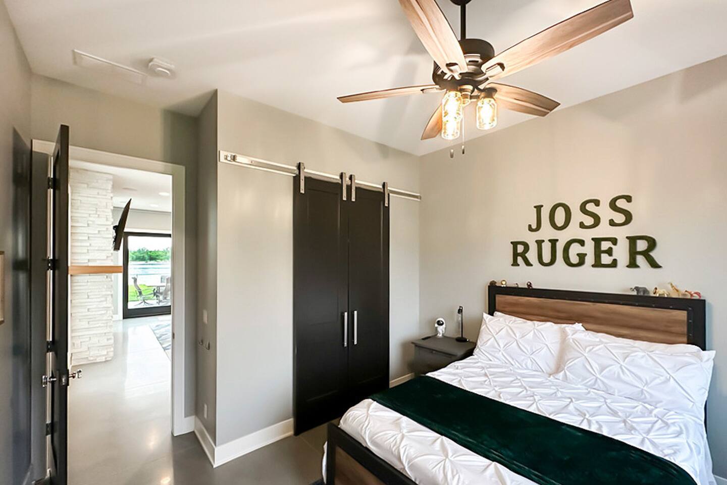 This is our personal Riverfront home with a total of 5 bedrooms, 4 bathrooms, 3000+ sqft, sleeps 10 in true beds & incredible views! Big bonus, the primary suite is on the main floor along with 2 more bedrooms. Family room, 2 more bedrooms, & bathroom upstairs. 10 guests maximum on property. Important to Note: You do NOT have access to the river for safety purposes. Also, since this our personal home the drawers & closets will have our clothes but plenty of hanging space for your clothes. Help yourself to any food in the pantry or refrigerator. I provide lots of disposable plates, cups, utensils & napkins. Open floor plan with kitchen, dining, & living room is one shared space. The living room features an electric fireplace (currently not working) and a large sectional. The large patio off the living room has multiple seating areas, a gas grill (one propane tank provided), fire pit (firewood provided) & a TV. The bedrooms feature an Alexa device (to play ambient noises at night to help you sleep & set alarms) For the ultimate sleep, each bedroom also has bamboo sheets, a fan, & blackout window shades. The main floor primary suite has many helpful features including wide doorways & an adjustable king bed controlled by a remote. The ensuite bathroom has double vanities and a shower so large it also has a tub inside of it. Owner will leave you plenty of space in the walk-in closet to hang your clothes. This home is off the interstate & only 20 minutes to downtown Omaha which includes the Old Market, CHI Center, and College World Series events. Other attractions nearby are the Henry Doorly Zoo (18mins), Werner Park (20 mins), & Eppley Airfield (25mins). - Kitchen: features walk-in pantry, oven with an electric cooktop, microwave, Keurig, blender, toaster, & more. -2nd Bedroom (girl’s room): 1 queen bed & 1 vanity with access to shared bathroom. - 3rd Bedroom (boy’s room): 1 queen bed & 1 vanity with access to shared bathroom. - 2nd Bathroom: access between bedroom 2 & 3. Share a tub/ shower combo & toilet. - 3rd Bathroom: 1 vanity/ sink, shower, and toilet. Second Level: - Family room with sectional, smart TV & gorgeous views of the river. -3rd Bedroom: 1 king bed, smart TV, closet. -4th Bedroom (Non-conforming, No built in closet open one provided). Queen bed, smart tv, & a desk. - 4th Bathroom: 1 vanity, shower, & toilet. Parking: no more than 6 cars allowed. Guests do NOT have access to inside garages. No parking along the side of the street, narrow roads in the neighborhood. Security System throughout home with multiple security cameras outside only, for insurance and safety purposes, NOT for guest use.