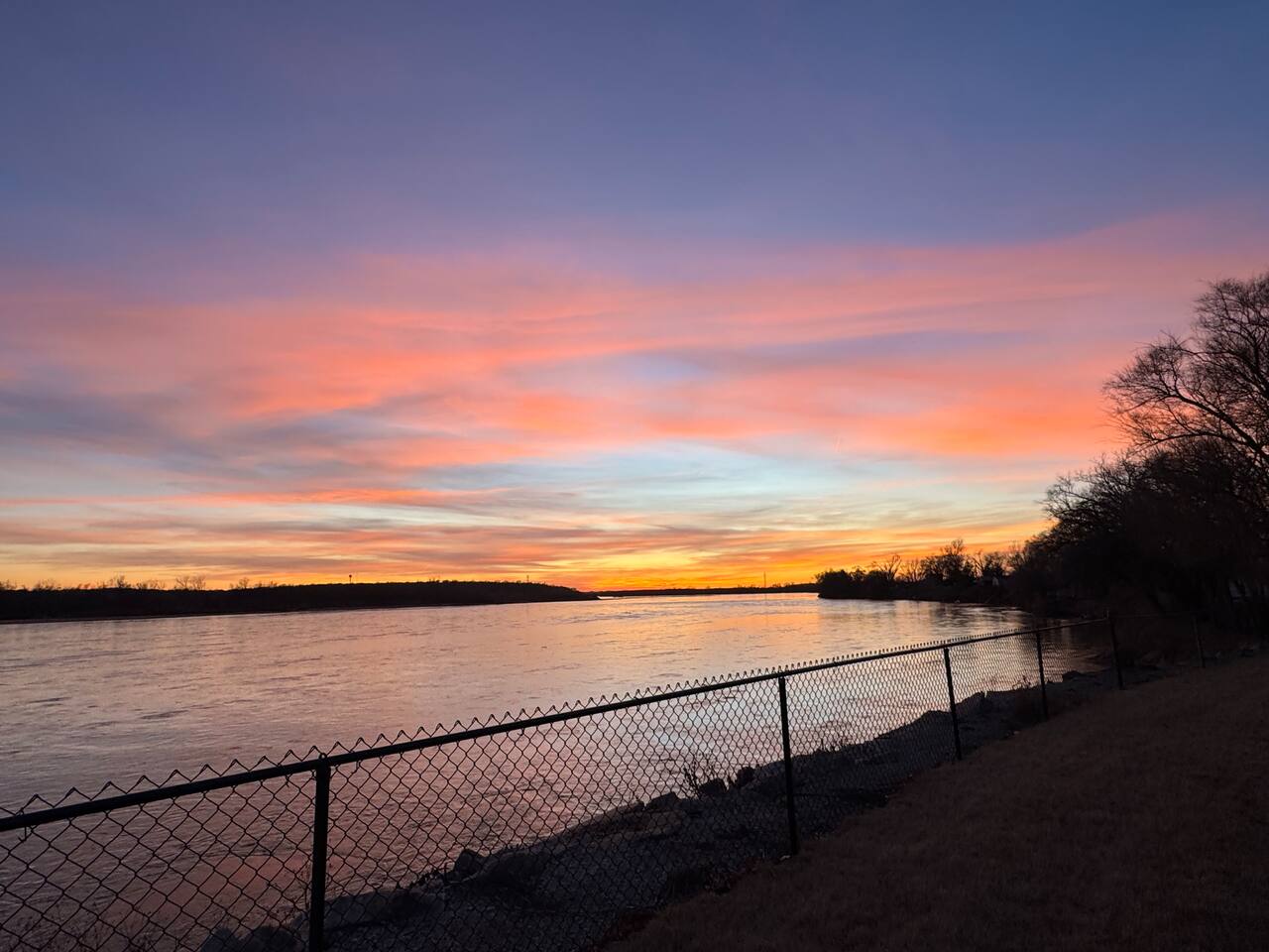 No direct access to river. May not walk river bank beyond fence. Fence in backyard is at top point of river bank before it sharply declines down into river.